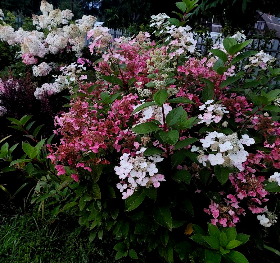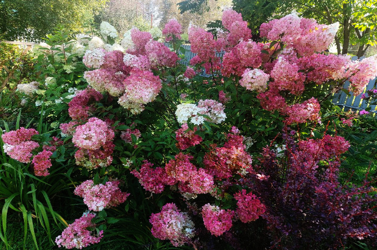 У метельчатых гортензий этот процесс самый зрелищный и предсказуемый. Их огромные соцветия-пирамидки никогда не остаются одного цвета надолго.