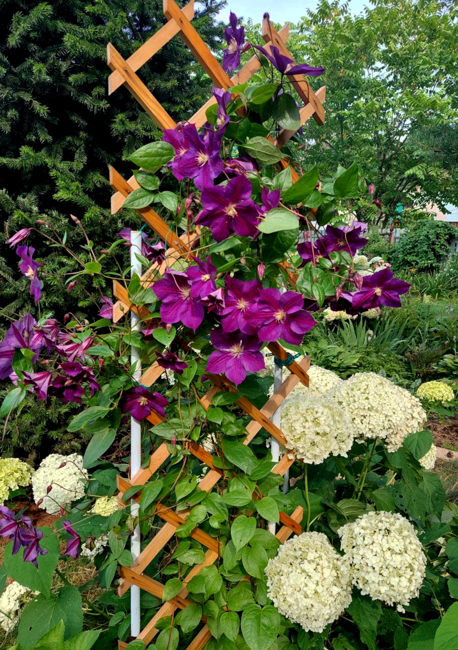У меня растут сорта второй и третьей группы обрезки. Для наших суровых зим идеальны именно «тертки» (третья группа): обрезала почти под ноль — и забыла до весны. Со второй группой возни больше, нужно укрывать оставленные плети. Безотказно цветут у меня розово-фиолетовые красавцы всех оттенков — просто загляденье!