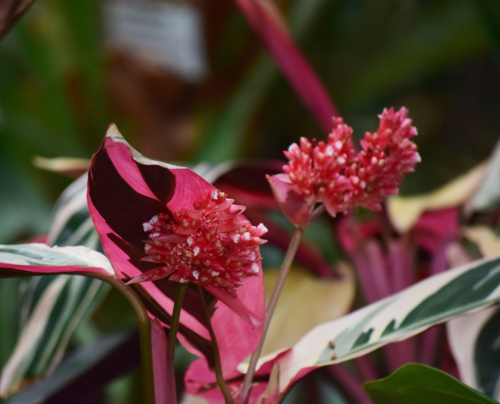 В комнатных условиях строманта цветет крайне редко . Если это и случается, то обычно летом. Цветки у нее мелкие, невзрачные, белого или желтоватого цвета, собранные в колосовидные соцветия на длинном цветоносе . Опытные цветоводы часто рекомендуют удалять цветоносы сразу после появления, так как цветение отнимает у растения много сил, после чего листья могут поблекнуть, а куст — потерять декоративность .